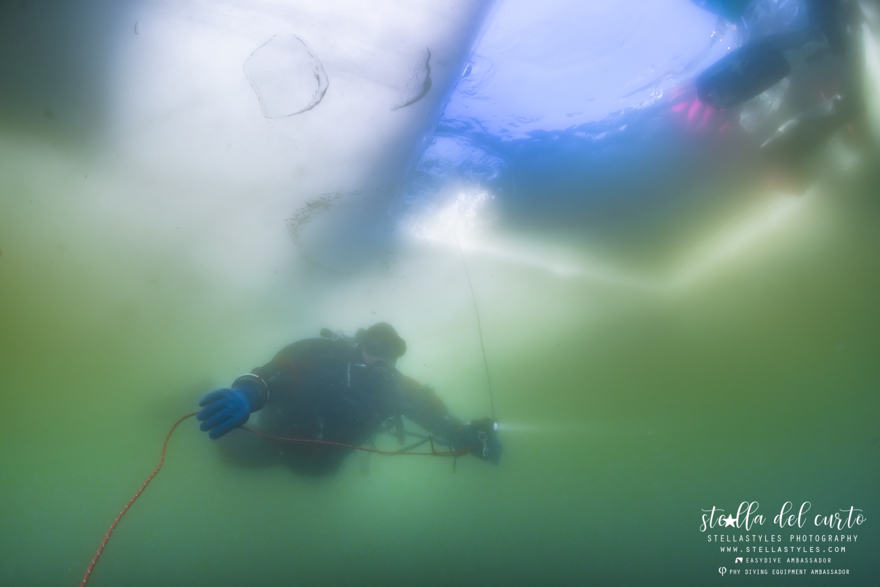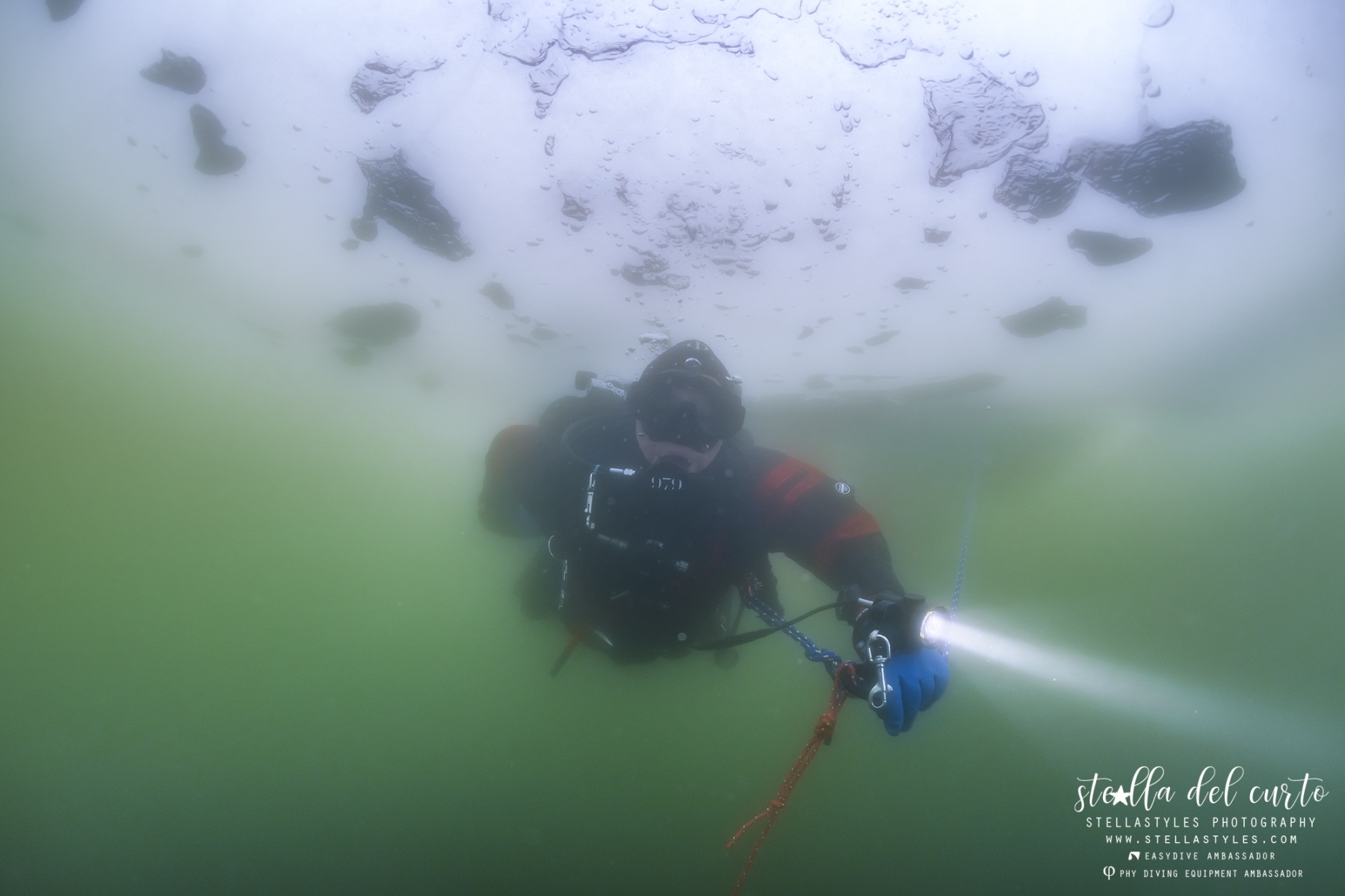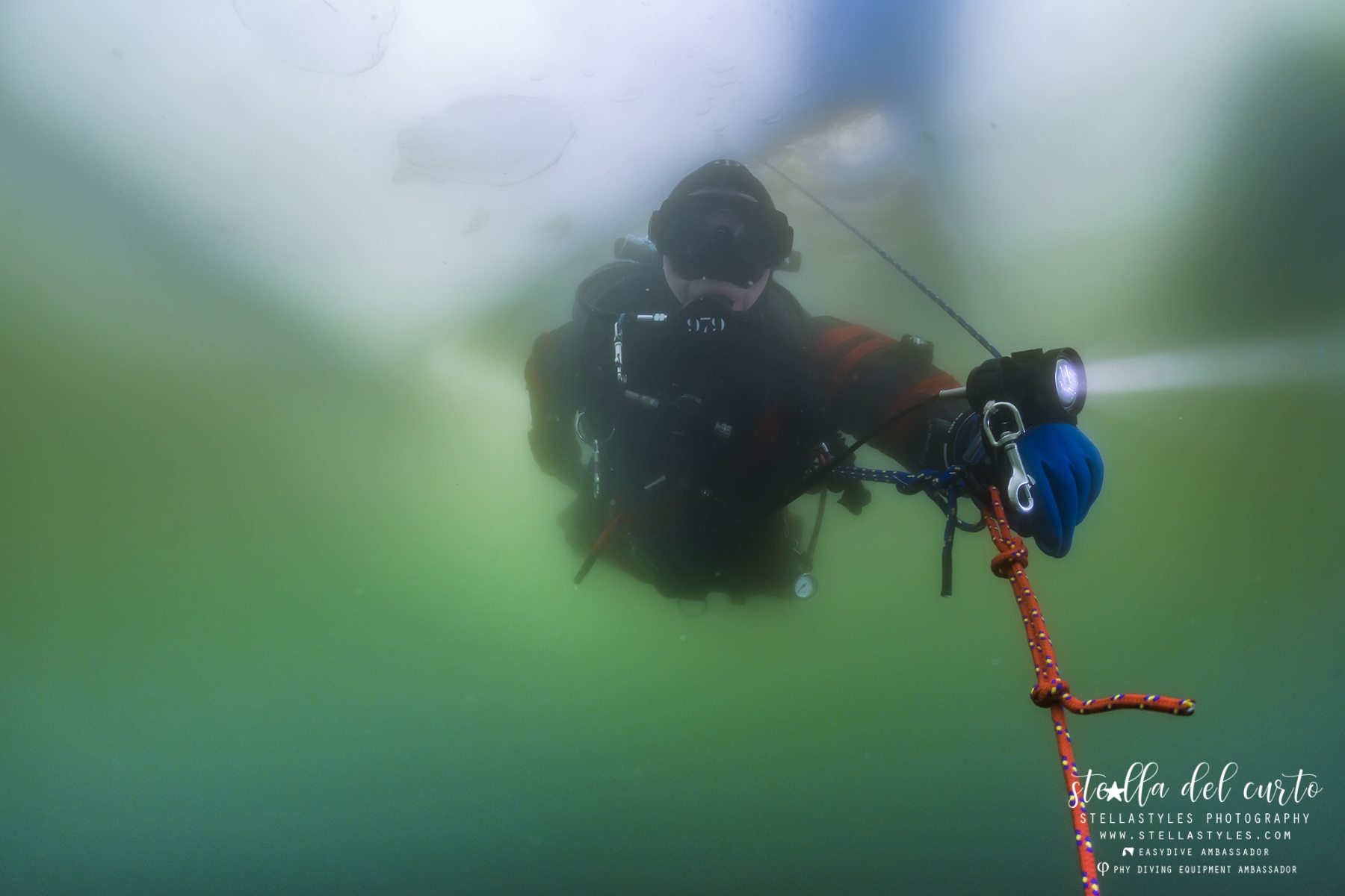 Il secondo giorno, dopo aver debitamente “sgelato” le attrezzature, ancora pratica di nodi e sicurezze e via per una seconda immersione. Purtroppo la visibilità nei primi metri non si è rivelata eccezionale, ma nonostante tutto ci resterà un gran bel ricordo di questo weekend!